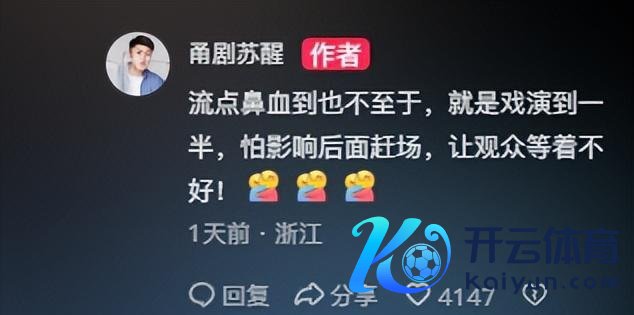 短短一句话,苏醒莫得往我方身上包揽任何的荣誉、不易,在他看来,演戏经过中流鼻血,那即是一件再疏忽不外的小事,没什么大不了的,看完他的回复,我才知苏醒的演技为何能这样好。