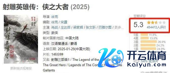 徐克导演的《射雕英杰传:侠之大者》此次真实让东谈主失望啊,票房才6.5亿,推断亏了至少3亿。更倒霉的是,豆瓣评分只好5.3,这对徐克导演来说几乎是羞辱。说真话,看到这个效果我也挺骇怪的,毕竟徐克导演但是香港电影的群众级东谈主物啊。