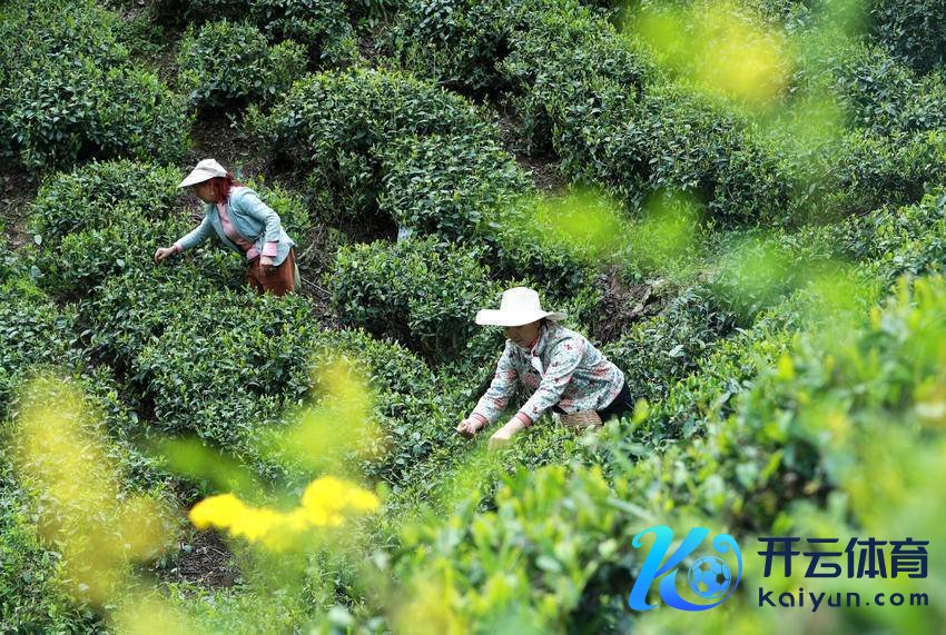 4月15日九游体育app(中国)官方网站,湖北省秭归县屈原镇凤凰溪村茶农在茶山采摘野茶。