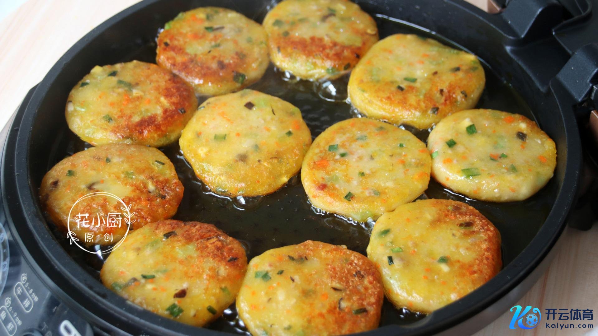 5、接下来手上抹点食用油,防御土豆泥粘手,揪一块儿土豆泥放在手心里,先搓成圆形,再压成小饼的口头,这么土豆泥生胚就作念好了。用电饼铛或者平底锅皆成,在上头刷一层薄薄的油,油热了就把土豆饼放进去。煎到两面皆焦黄了就不错出锅了。