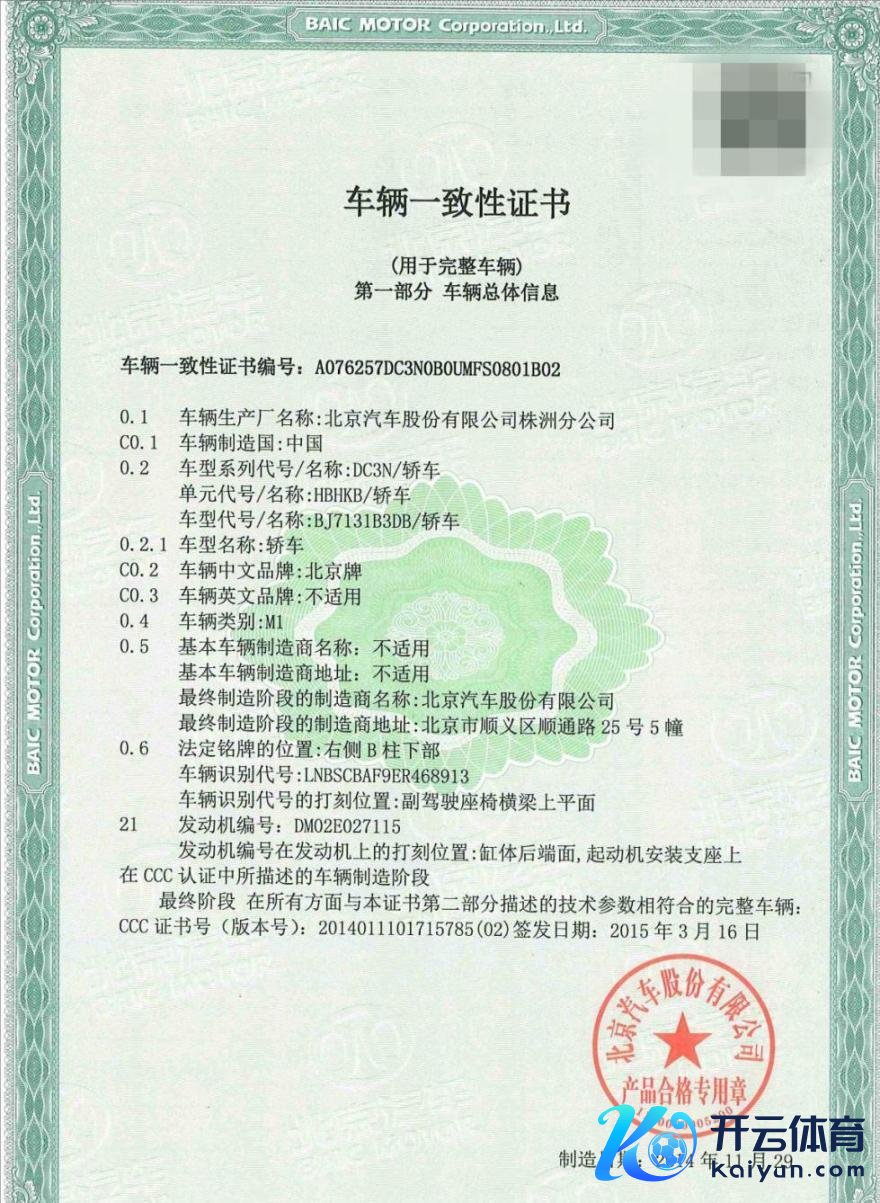 这是许多生手车主容易忽略的证件。车辆一致性文凭详确记录了车辆的基本信息、时刻参数、成立情况等,确认你的爱车相宜出厂标准。