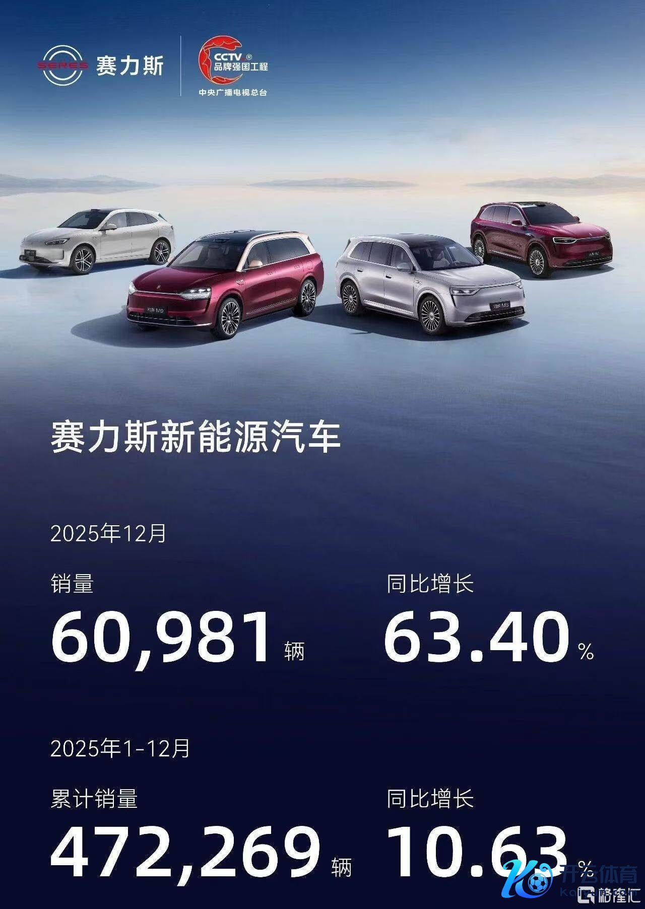 现金九游体育app平台 2025年中国新能源汽车市集迎来历史性拐点,渗入率突破60%的同期,行业竞争完成从价钱战向高端化、智能化价值竞争的潜入转型。 在品牌角力愈发浓烈、行业加速洗牌的布景下,赛力斯交出了一份亮眼的答卷:12月新能源汽车销量达到60981辆,同比激增63.40%,初次突破6万,且流畅三个月单月销量突破5万大关;全年累计销量472269辆,同比增长10.63%,创下年度销量新里程碑。 其中,问界系列全年请托超42万辆,成为运转企业增长的核心引擎。这份成绩单的背后,是赛力斯“高质地...
