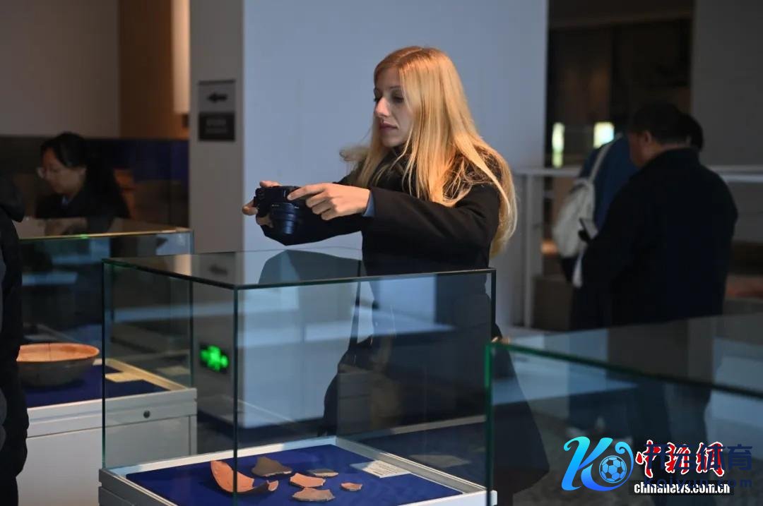 2024年10月22日,2024后生汉学家研修缠绵甘肃班团队22个国度的后生汉学家,走进甘肃省天水市秦安县地面湾名胜参不雅并进行专题研修。图为汉学家在拍摄地面湾博物馆藏品。 中新社记者 李亚龙 摄