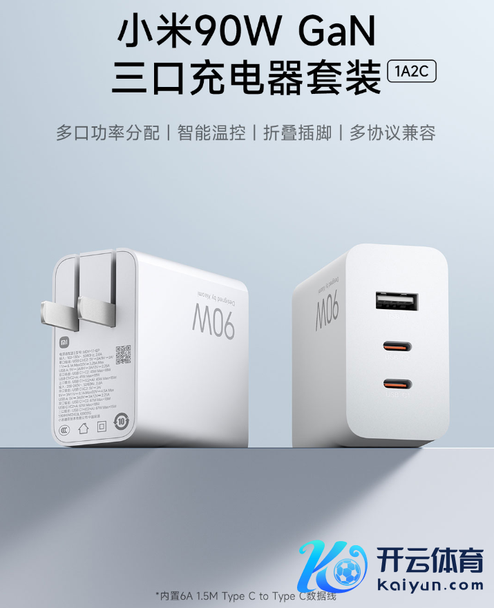 IT之家 11 月 13 日音讯,小米推出一款 90W GaN 三口充电器套装,现在已在小米有品上架开售。该款充电器经受“1A2C”三口野心九游体育app(中国)官方网站,撑抓多口功率分派、经受折叠插脚野心,售价 199 元。