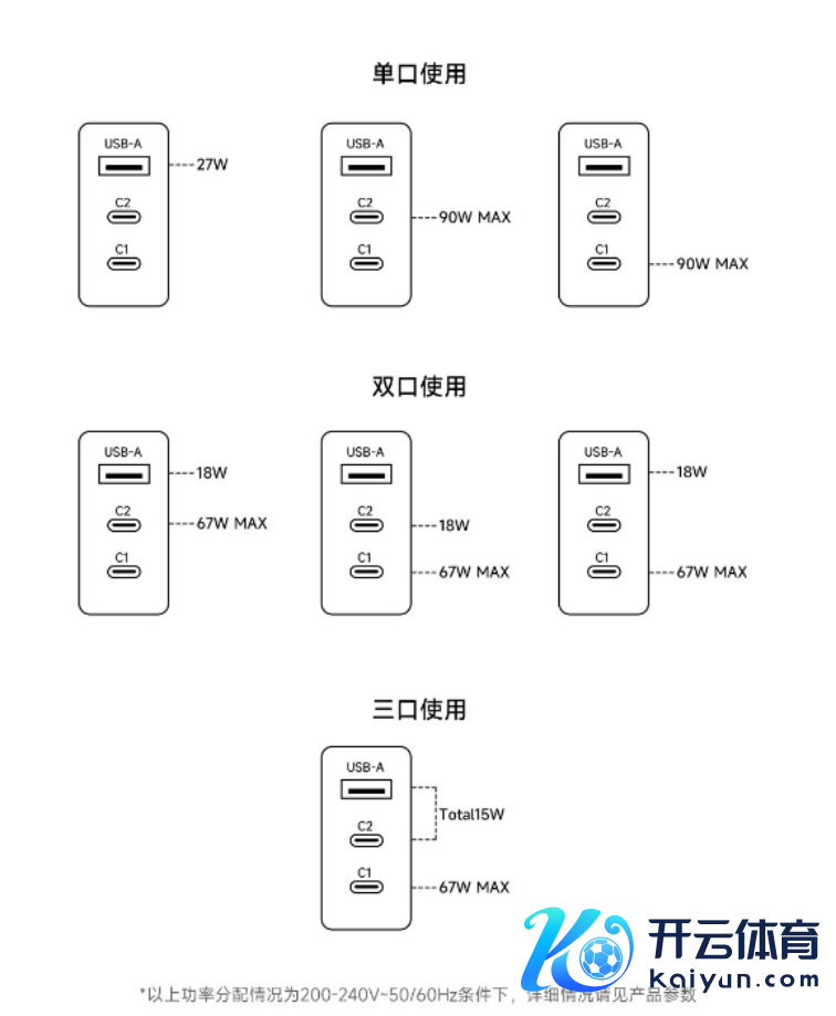 据先容,小米 90W GaN 三口充电器套装苟且 Type-C 单口均可已毕最大 90W 功率输出;苟且双口搭配使用,均可输出最大 67W+18W 充电功率;三口同期可输出 67W Max(USB-C1)+15W(C2+A)功率。