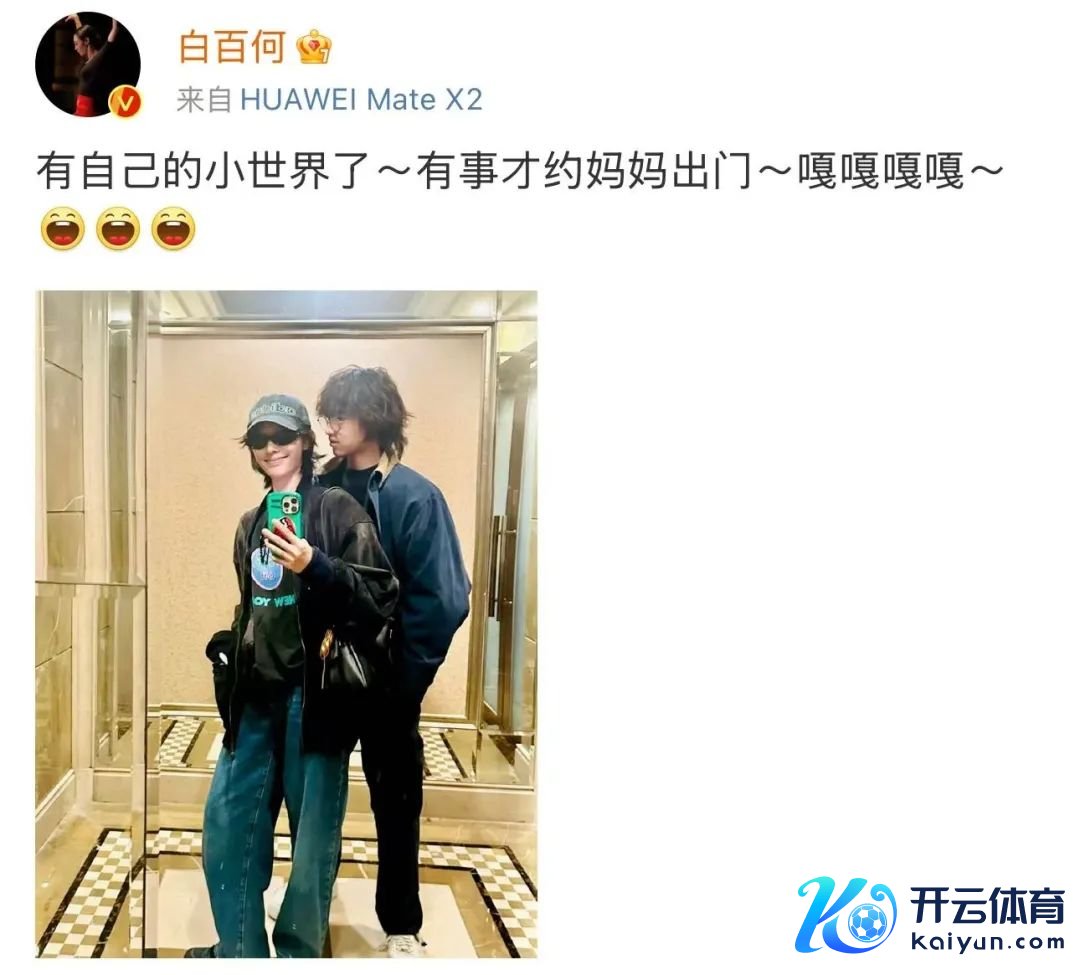 相片里,元宝的个头如故比姆妈白百何高了,蓬松的小鬈发显得很有个性。