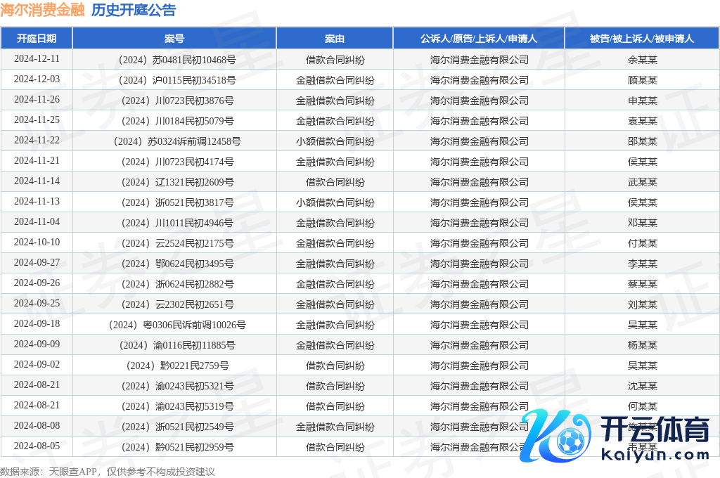 本站音信,把柄天眼查APP败露,近日公布了一则海尔蹧跶金融有限公司动作原告/上诉东谈主的开庭公告,疑望试验如下: