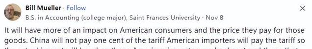 米勒网友也说谈:它将对好意思国破钞者以及他们为这些商品支付的价钱产生更大的影响。在这么的情况下,中国当然不会多支付多出来的部分,而这个部分实质如故好意思国独自承受。