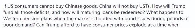 他昔时曾说过“中国正在被动付出代价”。虽然,不是中国买单,而是好意思国破钞者买单。