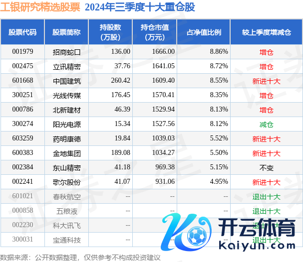 工银谈判精选股票为股票型基金,字据最新一期基金季报线路,该基金钞票建立:股票占净值比87.09%,无债券类钞票,现款占净值比11.8%。基金十大重仓股如下: