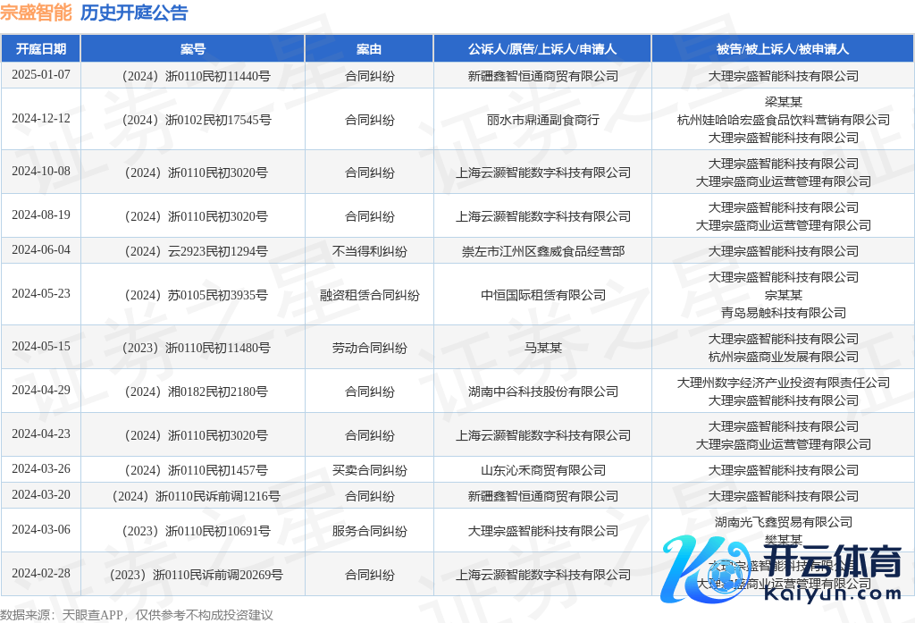 本站讯息九游体育娱乐网,把柄天眼查APP线路,近日公布了一则大理宗盛智能科技有限公司行为被告/被上诉东谈主的开庭公告,认真确质如下: