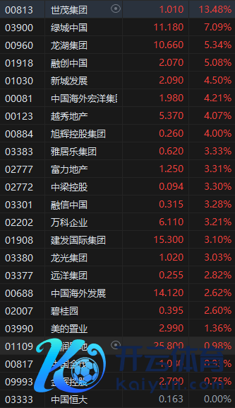 港股内房股大批高涨,世茂集团超13%领涨。机构研报称内地房地产板块初现竖立迹象,年内后续仍具备朝上空间。中金暗意,房地产现在商场对小阳春,包括2025全年商场的看法有一定分化,该行以为产业逐步走向产能竖立的旅途简略仍是掀开,原则上不错对地产股作念一些前置性布局,保管障翳方向赢利臆测和方针价不变。