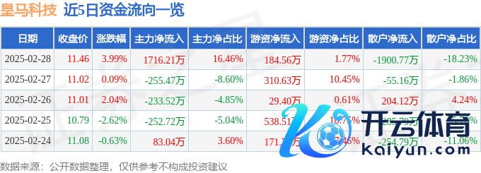 本站讯息,罢休2025年2月28日收盘,皇马科技(603181)报收于11.46元,上升3.99%,换手率1.56%,成交量9.21万手,成交额1.04亿元。