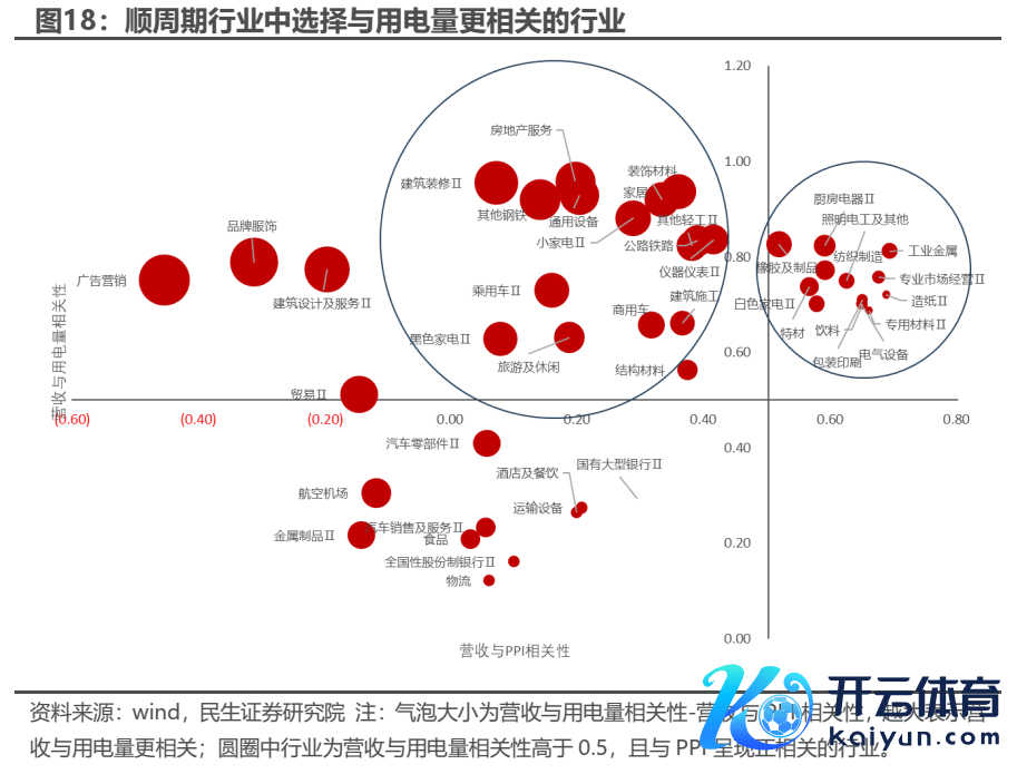 从2月份PMI来看,“量升”仍然是现时经济建筑的主基调,分娩的回升大于订单的回升,原材料价钱水平的抬升大于出厂价钱水平的抬升。在此基础上,受益的顺周期限制应当是与“量”而非“价”更关系的行业,咱们对A股108个二级行业进行了与用电量和PPI关系性的总结,找到了43个与用电量更为关系的行业,主淌若卑劣耗尽中的(饮料、白色家电、家居、餐饮旅游)、中游制造范例的(电气征战、通用征战、纺织制造)、上游材料范例的(工业金属、造纸等)。