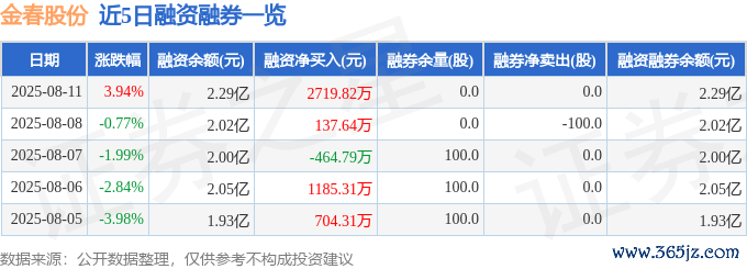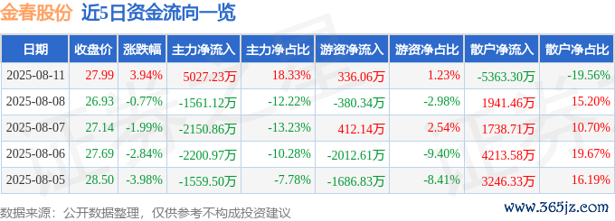 本站音问,已毕2025年8月11日收盘现金九游体育app平台,金春股份(300877)报收于27.99元,飞腾3.94%,换手率8.23%,成交量9.87万手,成交额2.74亿元。
