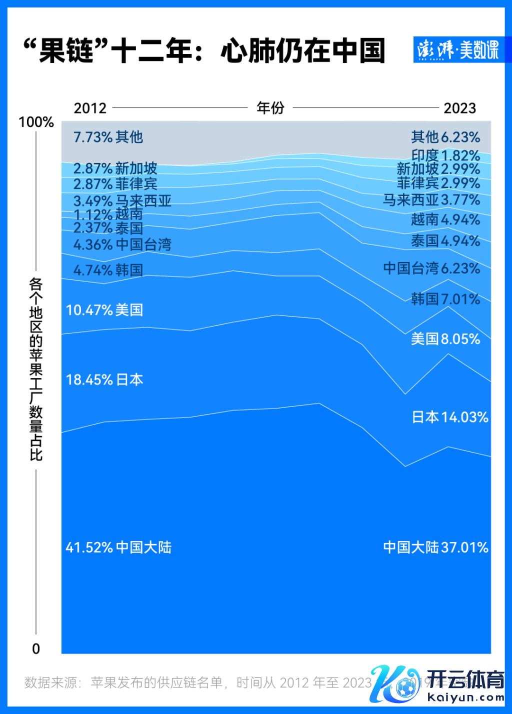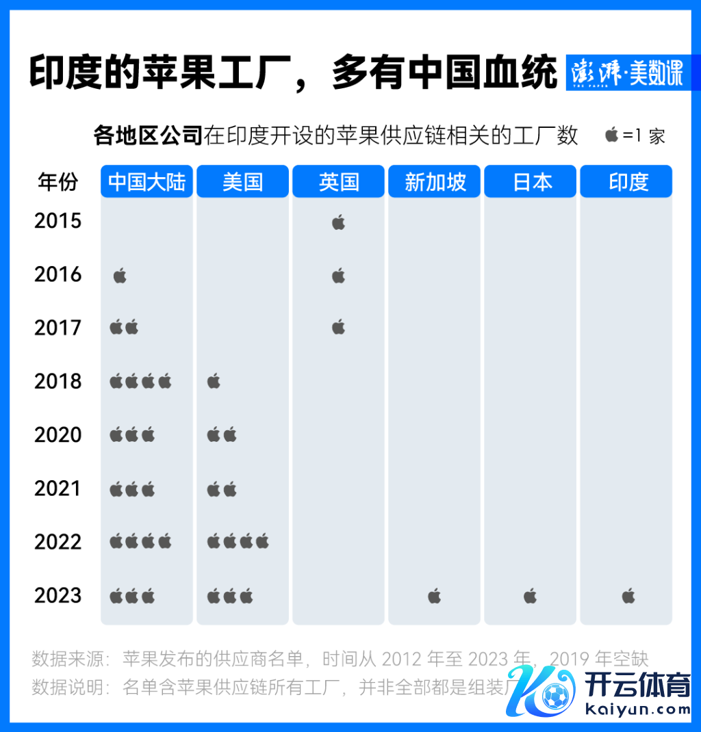 以致在中国之外的地区,中国公司也在影响着“果链”里的公司。有媒体分析了 2012 年至 2022 年的苹果供应链后发现,东南亚和印度的苹果工场激增是由中国公司涌向这些地区设厂推动的。