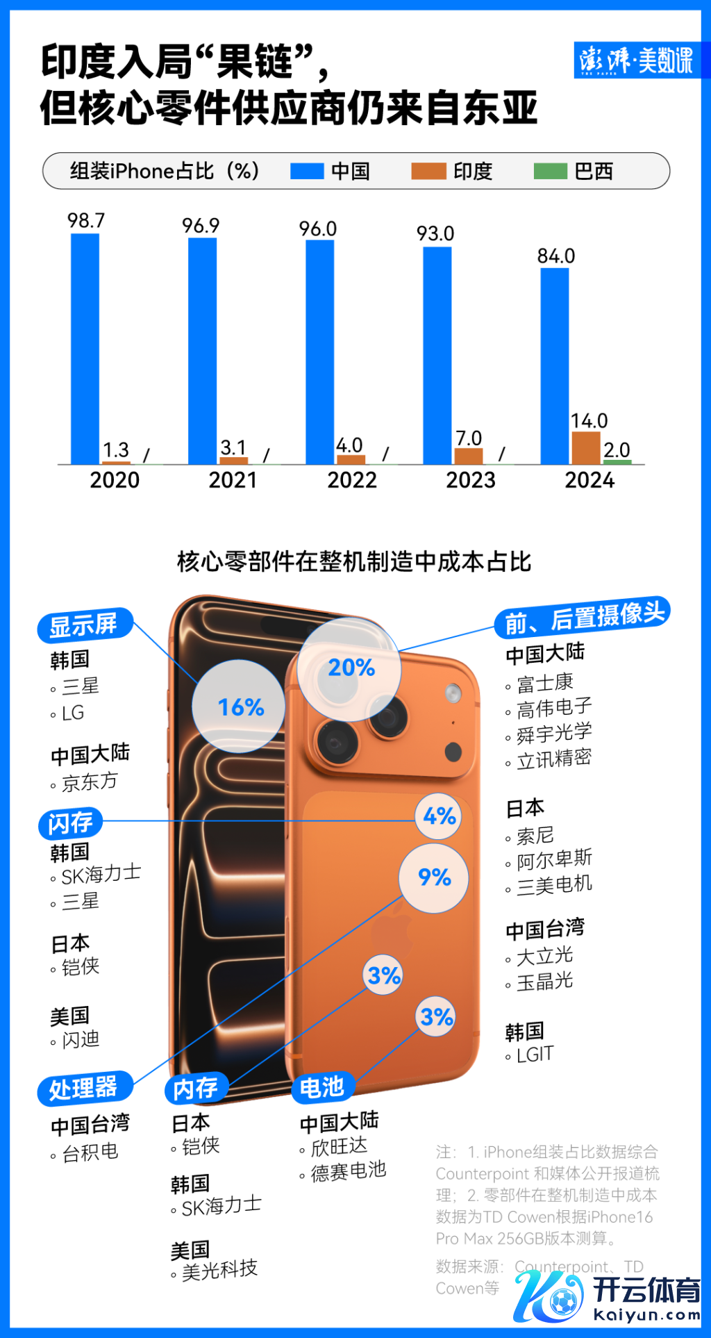除了CMOS图像传感器这种时间由索尼一家独大的边界,深谙“鲶鱼效应”之谈的苹果,险些在每个零部件上都会选拔与至少2家供应商结合,从而保证价钱探讨上风。