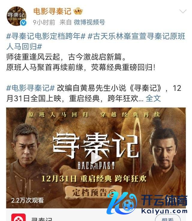 【事件配景与信息增量论说】 生成本事:2025年12月15日 05:45:40 【35595】 A. 事件中枢抽象 电影版《寻秦记》于2025年12月10日负责官宣定档,细目于2025年12月31日跨...
