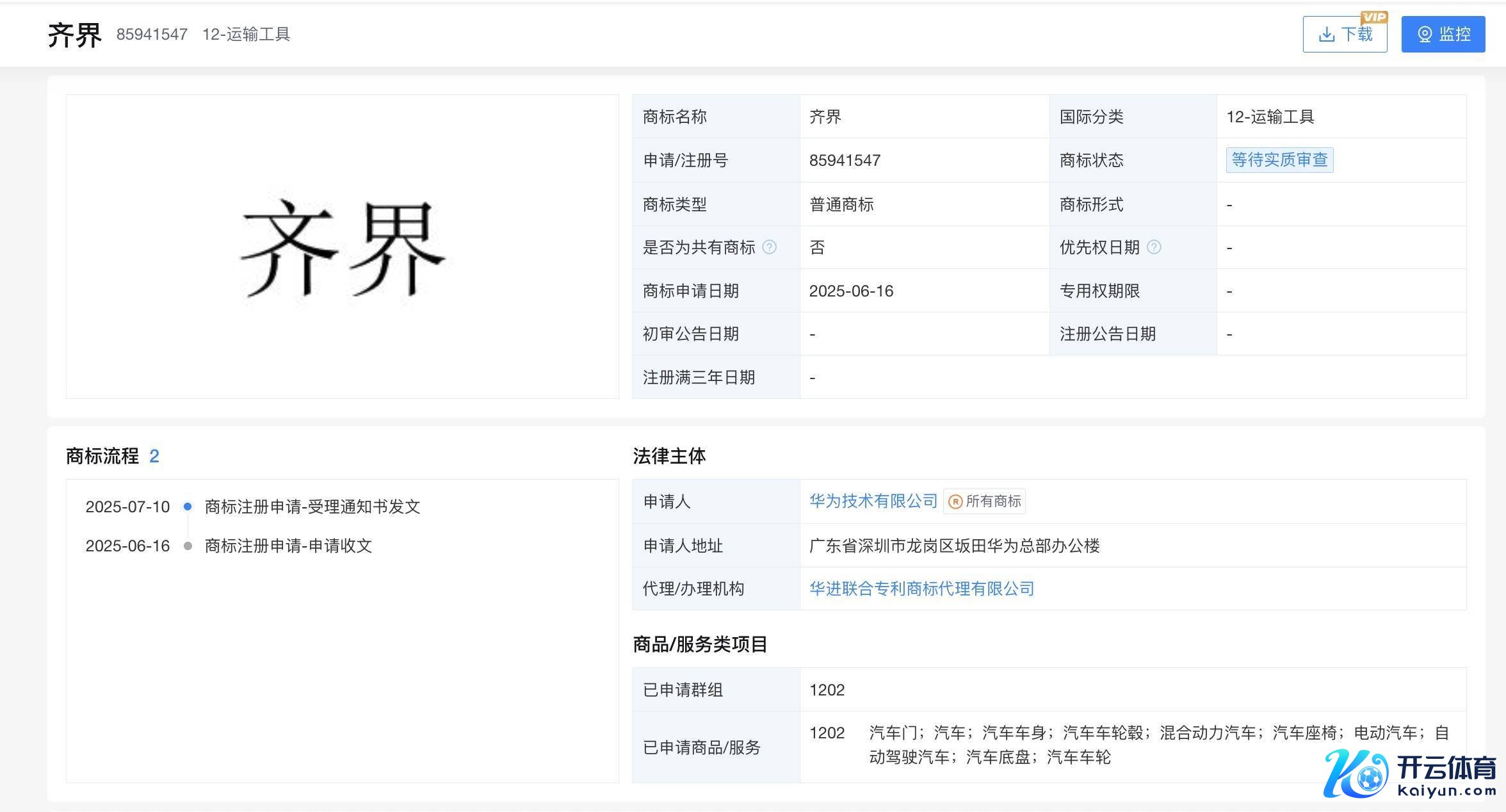 凤凰网科技讯 11月12日,国度常识产权局商标局信息判辨,华为时期有限公司于本年6月16日请求注册了“皆界”商标九游体育app官网,现在处于恭候骨子审查阶段。该商标包摄于外洋分类第12类,涵盖的商品和做事范围包括汽车门、汽车、汽车车身、汽车车轮毂、搀杂能源汽车、汽车座椅、电动汽车、自动驾驶汽车、汽车底盘、汽车车轮等。 华为在智能汽车畛域已酿成“界”字系列品牌矩阵,现在鸿蒙智行旗下已有问界、智界、享界、尊界、尚界五大品牌,区分与赛力斯、奇瑞等车企结合,隐蔽不同细分市集。这次请求“皆界”商标前,华...