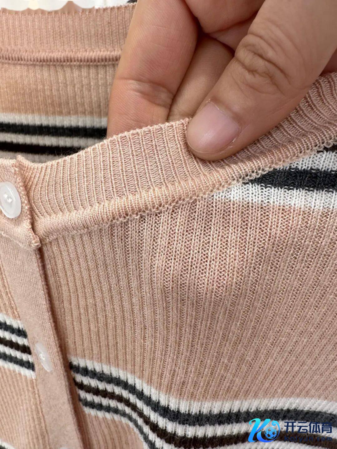 面料含精仿澳毛与醋酸纤维混纺,手感软糯邃密,同期保有可以的弹力与回弹。高密古道让条纹更立体,不易变形,贴身穿舒适不勒。