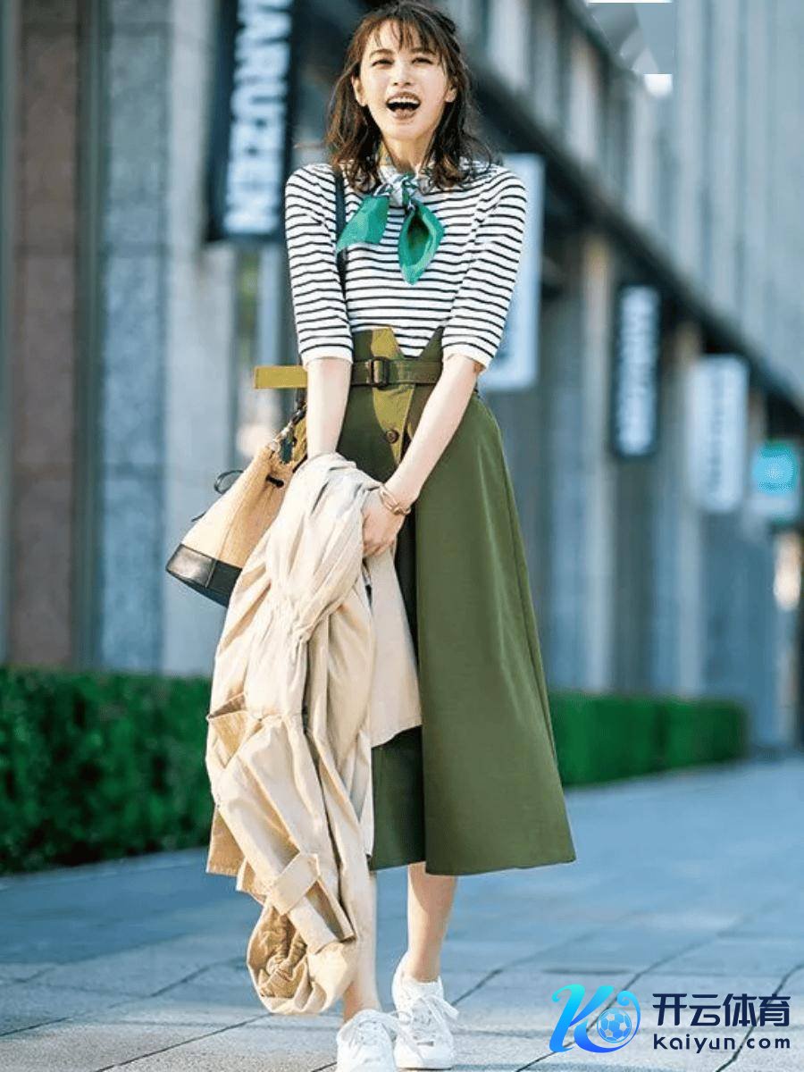 条纹衫和奶奶衫亦然好一又友。下半身配小裙子、奶奶裤,皆很邻家女孩Look,舒适又面子。