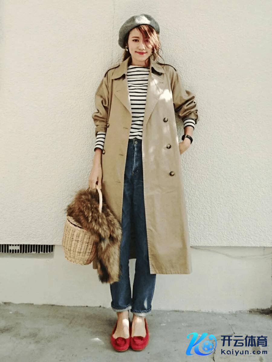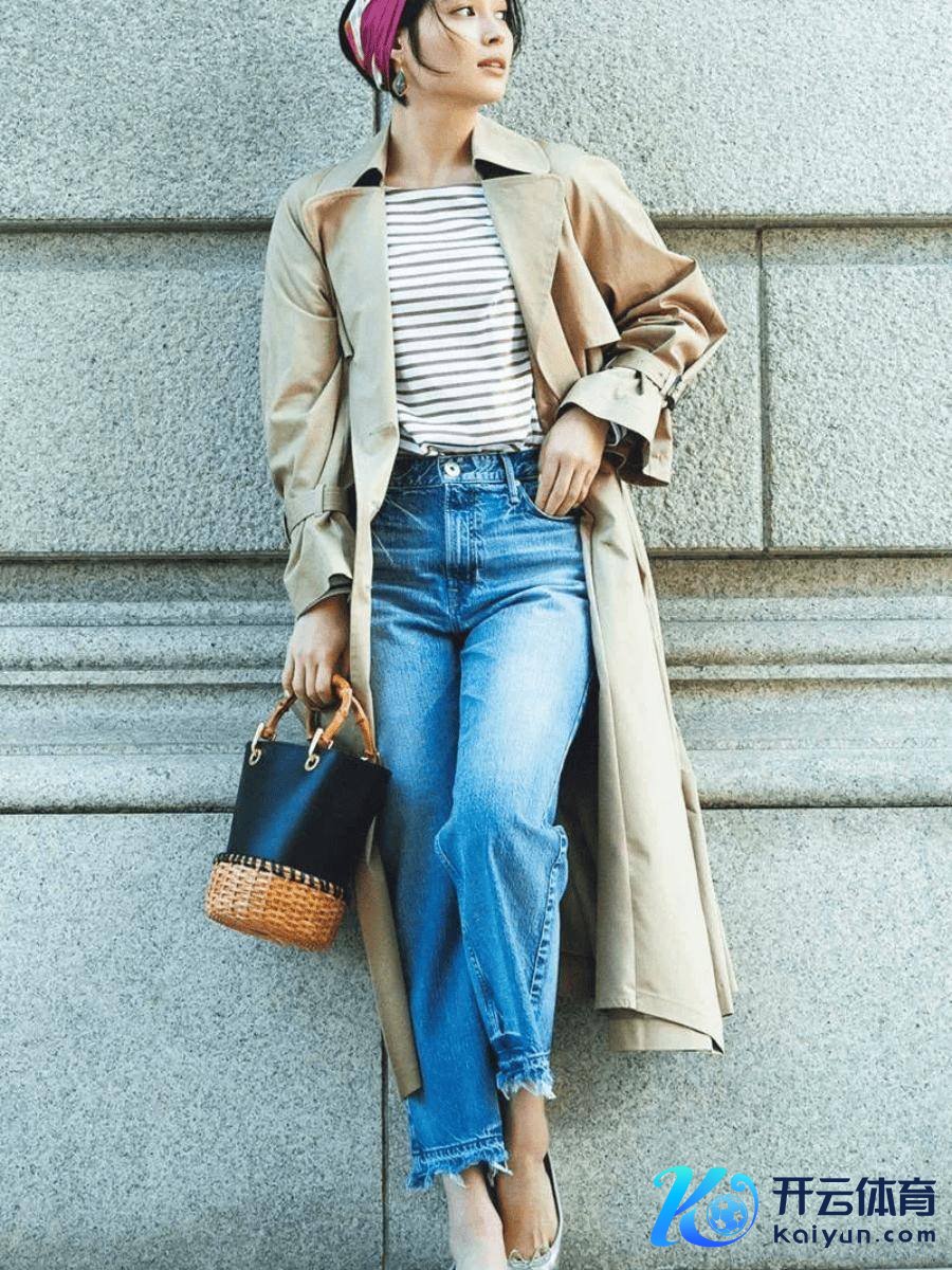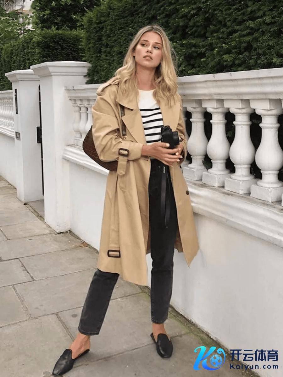 稀奇显气质的卡其色风衣+条纹衫,潇洒又跋扈。