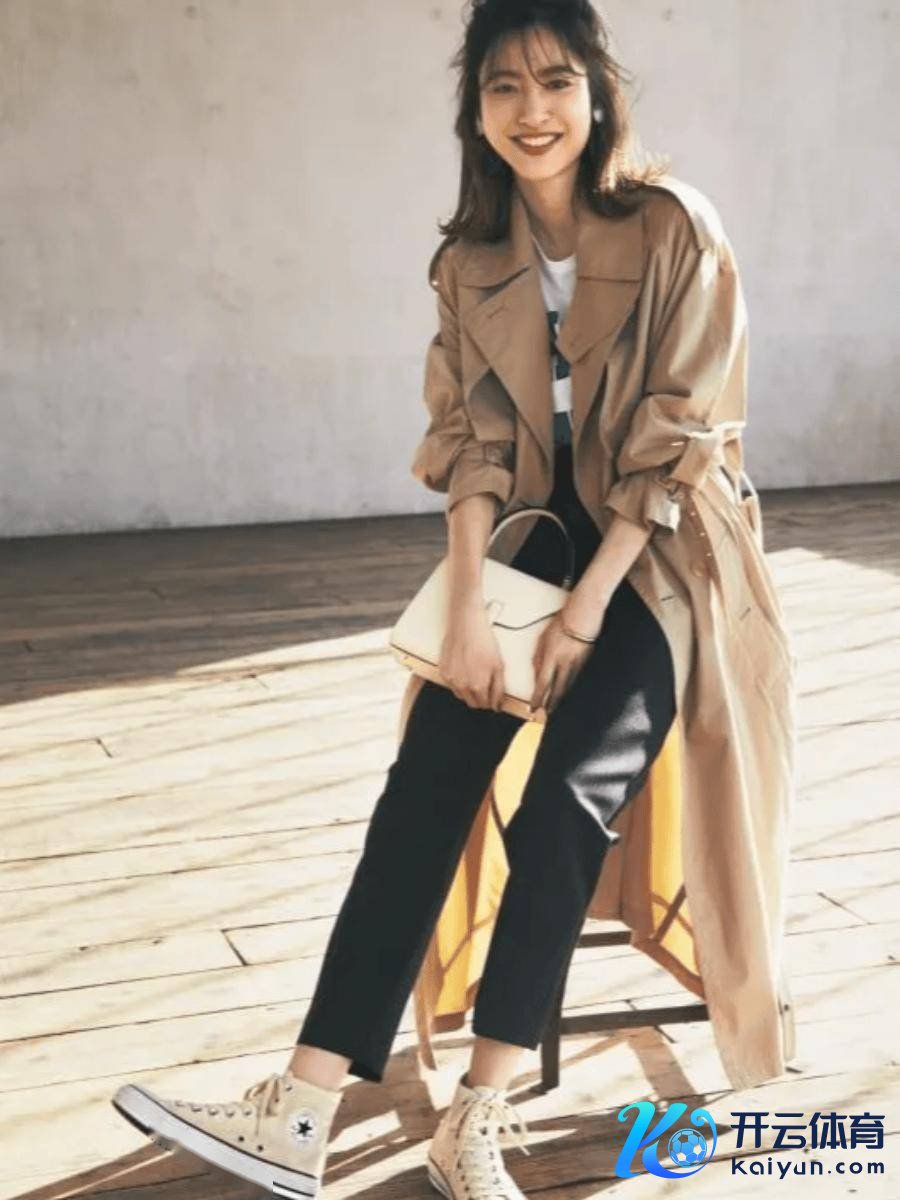 春天常见的卡其色风衣,搭配白色T恤可穿度稀奇高,下半身搭配优雅半身裙或安静牛仔裤,骄横你多个样式的需求。