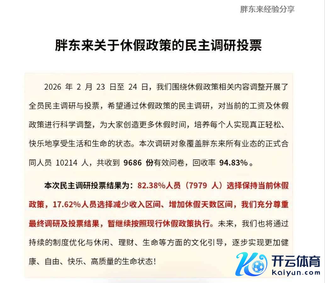 都鲁壹点:胖东来公布万东说念主投票:超8成职工拒降薪增假,现年休40天、日责任7小时
