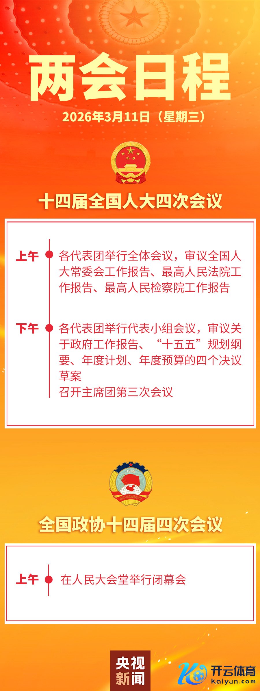 两会日程预报丨3月11日:东说念主代会审议世界东说念主大常委会责任发挥等 世界政协十四届四次会议舍弃两会日程预报丨3月11日:东说念主代会审议世界东说念主大常委会责任发挥等 世界政协十四届四次会议舍弃