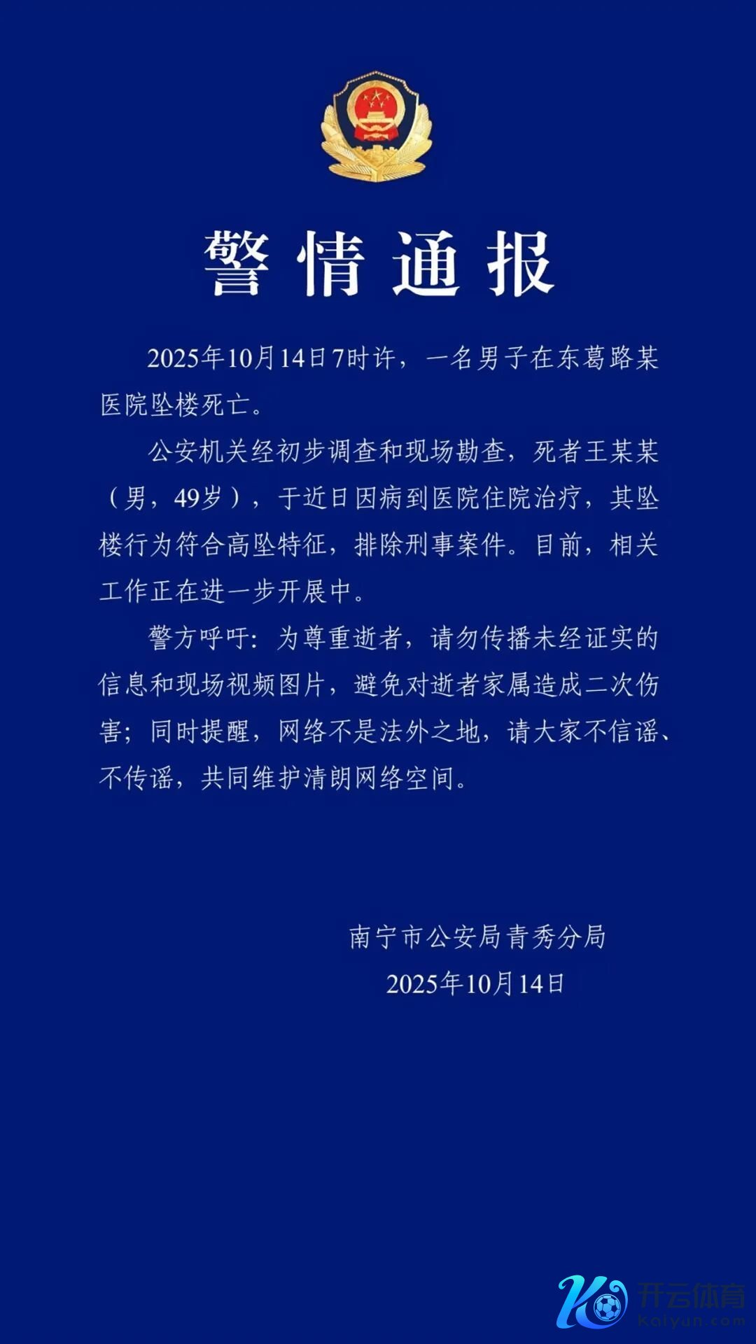 10月14日,广西南宁市公安局青秀分局发布警情通报,全文如下: