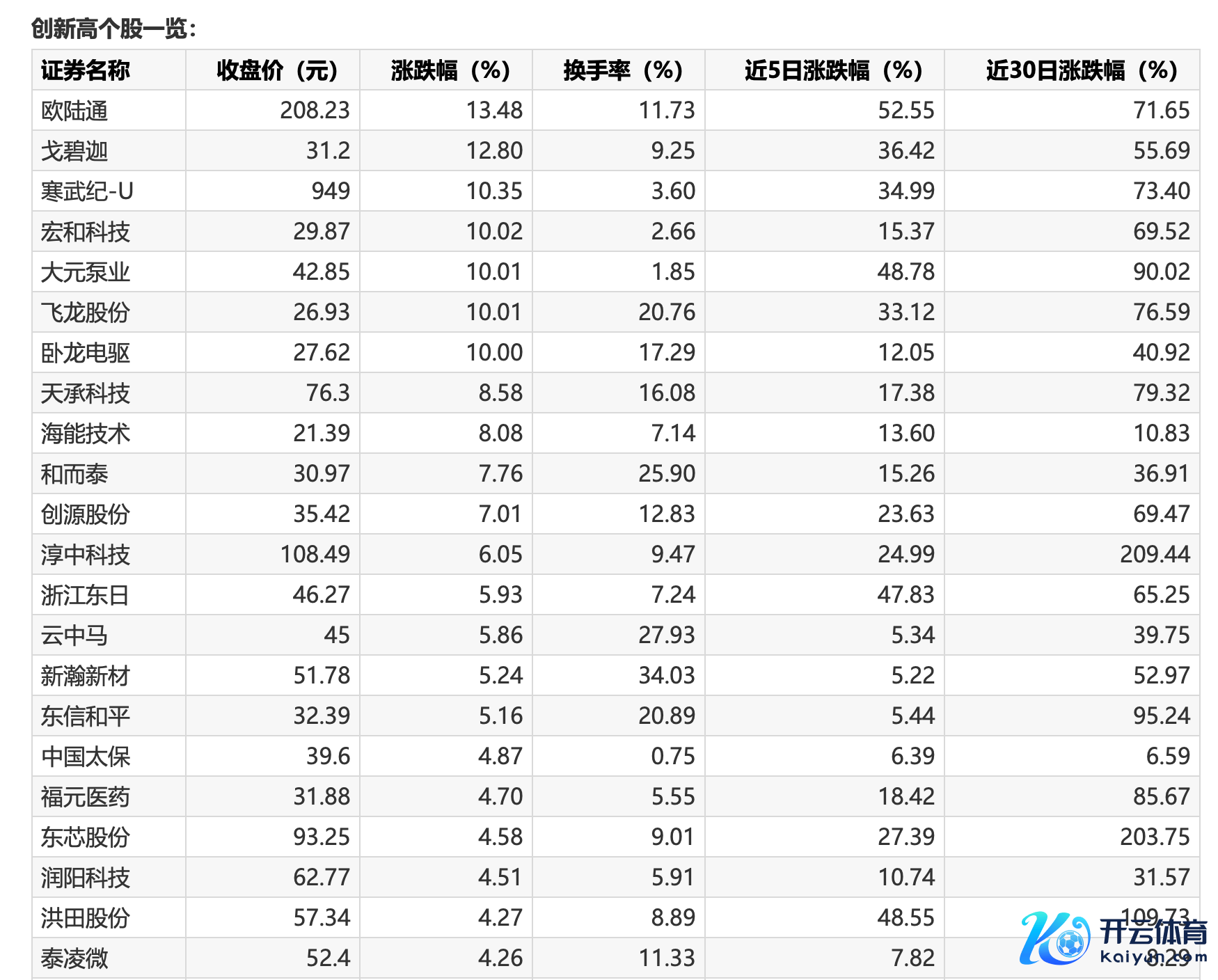 94只个股本日收盘创历史新高九游体育娱乐网94只个股本日收盘创历史新高